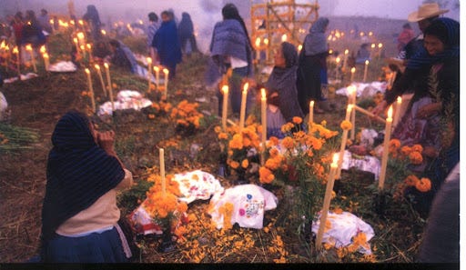 If we start with what actually existed before radio spots and mega-parades. November 1 and 2 sit on the Catholic calendar: All Saints’ and All Souls’. For centuries across New Spain and then Mexico, remembrance ran through parish life and family life. Home altars held candles, images of saints, food, and later photographs. Cemeteries had vigil and prayer. The forms were more local first. A night in Mixquic, Mexico did not look like a vigil in the Purépecha lake towns of Michoacán. Different communities also carried older ideas about death and the afterlife which included journeys to Mictlán, guardians of the underworld, into the new Catholic framework.